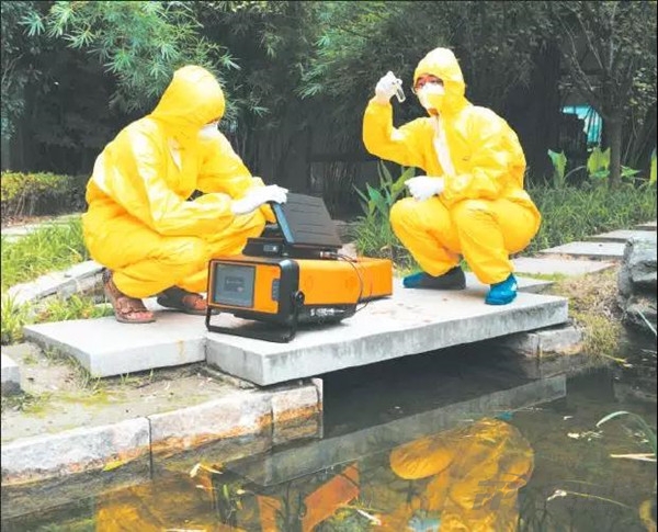 →在浙江省杭州市濱江區(qū),水質(zhì)監(jiān)測人員通過Mars-400設(shè)備精準監(jiān)測水質(zhì)各項指標,