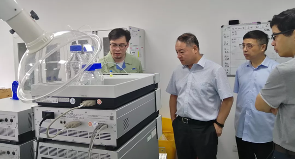 安譜實(shí)驗公司總經(jīng)理夏敏勇、董事長兼副總經(jīng)理郭曉群帶領(lǐng)申屠獻(xiàn)忠總裁深入?yún)⒂^了安譜實(shí)驗的校準(zhǔn)計量實(shí)驗室、標(biāo)準(zhǔn)物質(zhì)研制中心(RMP實(shí)驗室)、中心實(shí)驗室、有機(jī)合成實(shí)驗室和自動化生產(chǎn)車間,感受安譜實(shí)驗的企業(yè)建設(shè)。
