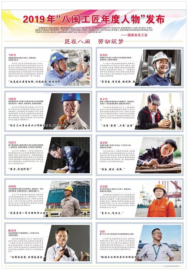 每一位入選的工匠身上都具備精湛技藝、卓越匠心、家國情懷,是新時代勞動者的典范。10名“八閩工匠年度人物”候選人主要來自電力、制造、石油化工、工藝制造等行業(yè),涵蓋鉗工、電工、焊工、手工等工種,并兼顧了不同性別、民族,具有充分的廣泛性、代表性、示范性。