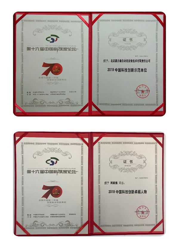 本屆論壇由中國(guó)技術(shù)市場(chǎng)協(xié)會(huì)、中國(guó)高科技產(chǎn)業(yè)化研究會(huì)、中國(guó)生產(chǎn)力促進(jìn)中心協(xié)會(huì)、中國(guó)科技體制改革研究會(huì)、發(fā)現(xiàn)雜志社聯(lián)合主辦,在本次大會(huì)上,憑借多年來(lái)的堅(jiān)持創(chuàng)新發(fā)展,北京康吉森榮膺“2019中國(guó)科技創(chuàng)新示范單位”、中國(guó)自動(dòng)化集團(tuán)總裁北京康吉森董事長(zhǎng)周政強(qiáng)先生榮膺“2019中國(guó)科技創(chuàng)新卓越人物”。
