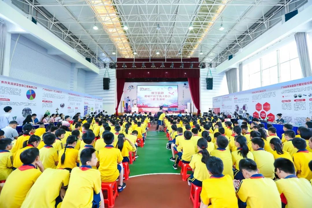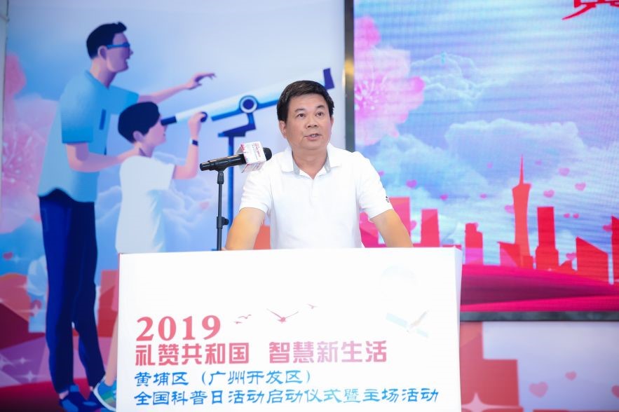 9月17日上午,以“禮贊共和國、智慧新生活”為主題的黃埔區、廣州開發區2019年全國科普日活動啟動儀式暨主場活動在黃埔區九龍第二小學拉開帷幕。廣州市科學技術協會副巡視員程志鵬,廣州市科學技術協會科普部部長黃增豪、新龍鎮鎮長李貴清、副鎮長何良新、黃埔區科學技術協會主席張景銘、廣州市生態環境局黃埔區分局局長李應生、黃埔區教育局副調研員黃方亮、黃埔區科學技術協會秘書長李雪光、黃埔區九龍第二小學校長周俊勇、廣州開發區科技金融服務中心總經理邢寶偉、黃埔區公安分局、黃埔區禁毒委員會辦公室,黃埔區市場監督管理局、黃埔區中醫藥學會等單位以及粵嵌通信、博冠光電、香雪制藥、白云山中一藥、威凱檢測、享學教育、直通教育等36家科技企業代表、區各街道代表、九龍第二小學師生共1000余人參加。