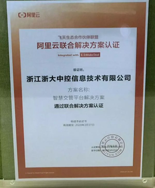 憑借自身深厚行業(yè)技術(shù)積累與產(chǎn)品創(chuàng)新,秉承與阿里云共同為客戶創(chuàng)造價值的理念,將用戶的認可放在第一位的態(tài)度,中控將公司城市交通板塊的全線產(chǎn)品,與阿里云共同形成了城市交通行業(yè)整體解決方案,并通過了阿里云聯(lián)合解決方案的認證。25日下午,中控智慧交通事業(yè)群朱敏代表公司應(yīng)邀請出席全球生態(tài)伙伴峰會阿里云合作伙伴授牌儀式并領(lǐng)取證書。