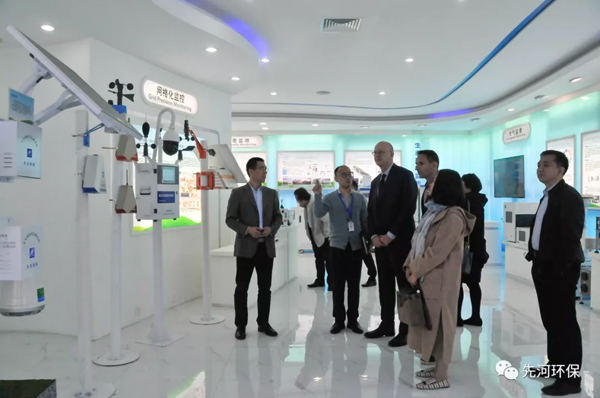 Peter White總經(jīng)理一行首先參觀了公司展廳、生態(tài)環(huán)境大數(shù)據(jù)應(yīng)用中心,劉春田副總裁進(jìn)行了整體介紹。劉總表示,作為智慧環(huán)境及大數(shù)據(jù)應(yīng)用系統(tǒng)的開創(chuàng)者,先河環(huán)保結(jié)合各地政府管理需求,建立了“天地空一體化監(jiān)測(cè)網(wǎng)”,為科學(xué)治霾、精準(zhǔn)治污提供決策依據(jù)。先河基于“環(huán)保物聯(lián)網(wǎng)”和“大數(shù)據(jù)”的先進(jìn)設(shè)計(jì)思想,通過自主創(chuàng)新,率先在業(yè)內(nèi)推出的生態(tài)環(huán)境網(wǎng)格化系統(tǒng),目前已在全球十幾個(gè)國(guó)家,以及中國(guó)18個(gè)省、137個(gè)城市推廣應(yīng)用,為生態(tài)環(huán)境的精細(xì)化監(jiān)測(cè)、污染防治提供科學(xué)有效的技術(shù)支撐和保障。而在大數(shù)據(jù)應(yīng)用上,公司利用環(huán)境數(shù)據(jù),結(jié)合地理信息、氣象信息,進(jìn)行環(huán)境分析研判,協(xié)助各地用戶診斷環(huán)境問題、科學(xué)減排。目前在大氣及水環(huán)境領(lǐng)域,已有相對(duì)成熟的應(yīng)用經(jīng)驗(yàn)。