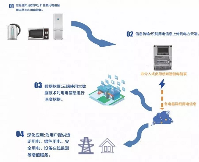非介入式負荷感知智能電能表則能實時感知用戶用電數據并傳輸至云端,云系統結合現代大數據分析技術和物聯網通信技術對海量數據進行深度挖掘和深化應用,為電網公司和電力用戶的友好雙向互動、安全用電、能效管理、需求側管理提供支撐。