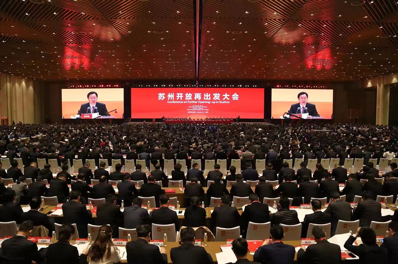 2020 年1月3日,由中共蘇州市委、蘇州人民政府主辦的“蘇州開(kāi)放再出發(fā)大會(huì)”在蘇州國(guó)際博覽中心金雞湖國(guó)際會(huì)議中心盛大舉行。來(lái)自海內(nèi)外約3000名創(chuàng)新創(chuàng)業(yè)人才、企業(yè)家、投資者、國(guó)際友人等齊聚金雞湖畔,共同見(jiàn)證蘇州高水平開(kāi)放重要?dú)v史時(shí)刻,攜手創(chuàng)造蘇州開(kāi)放發(fā)展新奇跡。