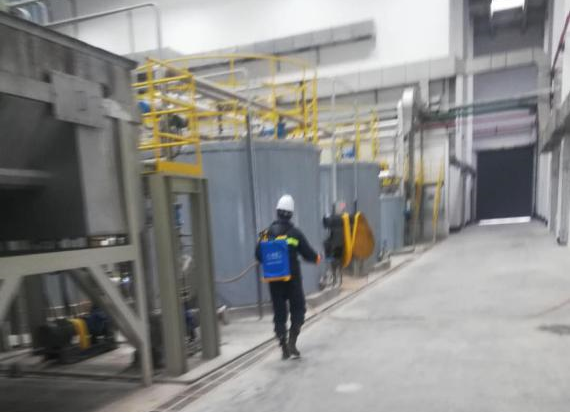 每天廠區公共區域、辦公區域進行噴霧消毒。