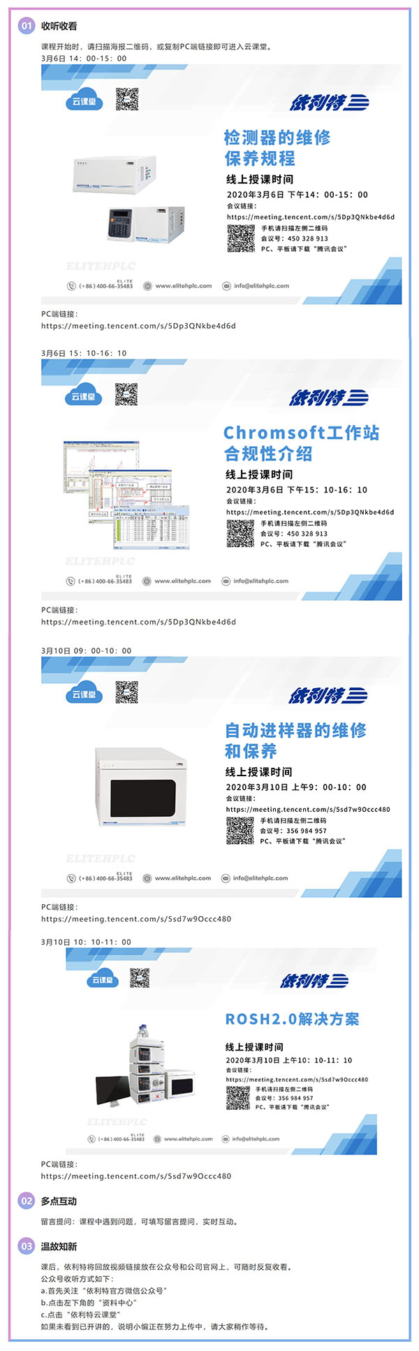 疫情當(dāng)前,服務(wù)不止!面對新冠肺炎防控的關(guān)鍵時期,依利特公司響應(yīng)國家號召"防控不停學(xué)",積極推行“空中加油站”服務(wù),為廣大用戶免費提供“云課堂”培訓(xùn),真正做到足不出戶便可學(xué)習(xí)交流。