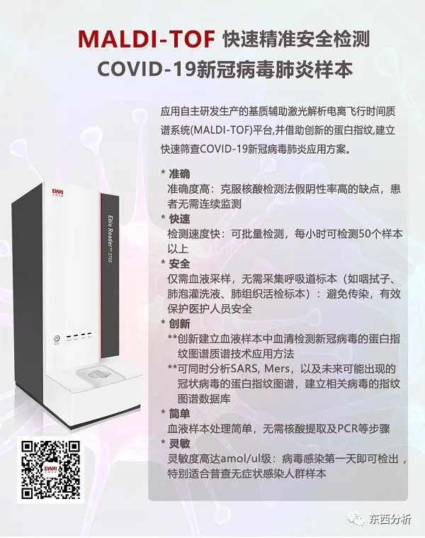 隨后,付兆庚一行專門聽取了公司生命科學(xué)團(tuán)隊(duì)負(fù)責(zé)人對(duì)Ebio Reader 3700 飛行時(shí)間質(zhì)譜系統(tǒng)在新冠病毒肺炎檢測應(yīng)用的匯報(bào)。當(dāng)聽到我公司借助自主研發(fā)、生產(chǎn)的飛行時(shí)間質(zhì)譜系統(tǒng),并利用創(chuàng)新的蛋白指紋圖譜在COVID-19檢測中取得令人鼓舞的成果時(shí),付兆庚區(qū)長非常高興,稱贊東西分析作為門頭溝區(qū)的金牌企業(yè),多年來除了嚴(yán)把產(chǎn)品質(zhì)量關(guān), 同時(shí)也在新的領(lǐng)域加大創(chuàng)新力度。這次能在抗擊疫情的戰(zhàn)役中,第一時(shí)間做出迅速的反應(yīng),并取得令人振奮的成績,不僅顯示出東西分析多年的技術(shù)實(shí)力,更證明了東西分析高度的社會(huì)責(zé)任感。