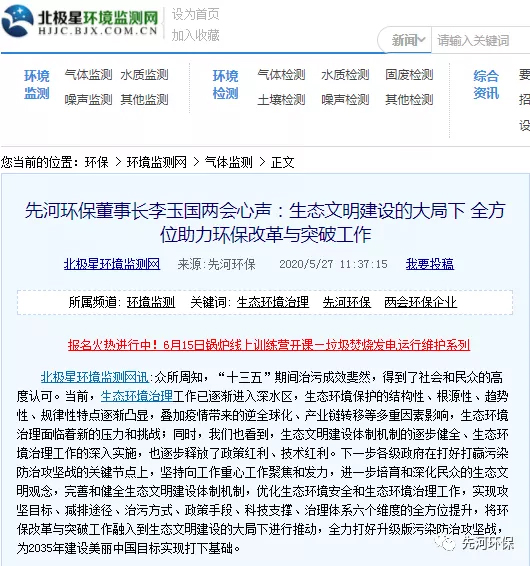 兩會(huì)期間,北極星環(huán)境監(jiān)測(cè)網(wǎng)特邀先河環(huán)保(股票代碼:300137)董事長(zhǎng)李玉國通過網(wǎng)絡(luò)媒體向“兩會(huì)”建言獻(xiàn)策。報(bào)道發(fā)出后,立即引發(fā)廣泛關(guān)注。