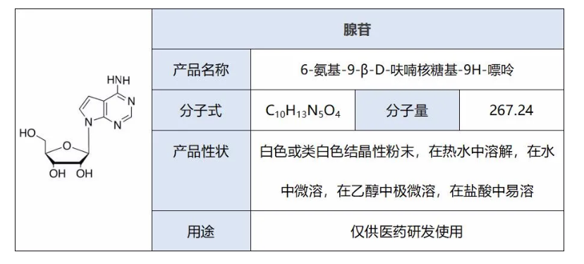 腺苷作為天然核苷酸,是機(jī)體代謝的中間產(chǎn)物,也是體內(nèi)重要活性成分之一。腺苷做成的注射液1989年美國首次上市。腺苷(Adenosine, AD)即腺嘌呤核苷,是機(jī)體RNA的代謝產(chǎn)物,屬于生物小分子化合物,它是一種內(nèi)源性核苷,能參與血管神經(jīng)舒張活動,具有抗心律失常的功效。在中樞神經(jīng)系統(tǒng)中,它對神經(jīng)傳遞的調(diào)節(jié)及對抵抗缺血性與疾病性神經(jīng)傷害等方面具有重要作用。