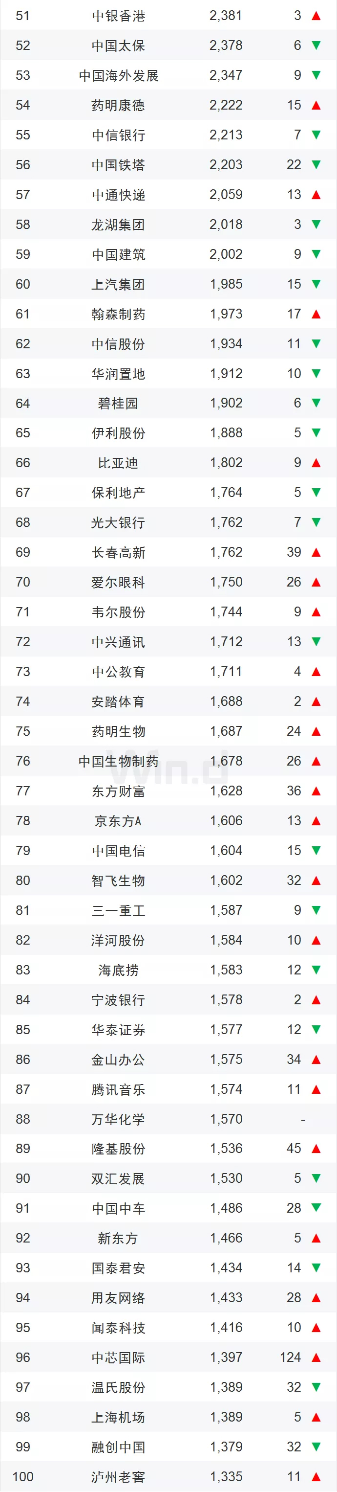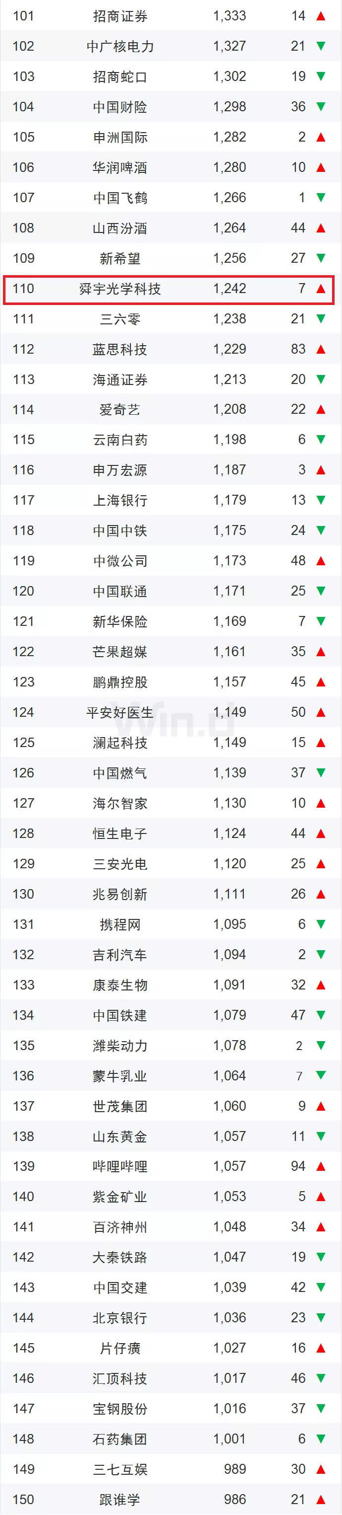 舜宇位列第110位,上升7位。