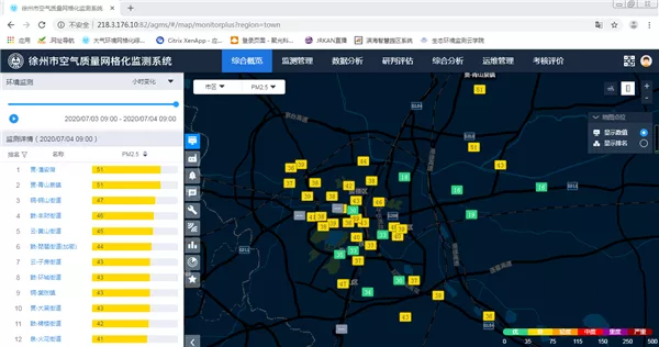 “通過網(wǎng)格化布點(diǎn)實(shí)現(xiàn)整個(gè)監(jiān)測區(qū)域全覆蓋,利用大數(shù)據(jù)技術(shù)對海量監(jiān)測數(shù)據(jù)進(jìn)行分析,精準(zhǔn)鎖定污染區(qū)域和污染源,分析結(jié)果可直接通過手機(jī)端發(fā)送給管理人員,通過網(wǎng)格化責(zé)任下沉,現(xiàn)場人員迅速出動(dòng),可在幾小時(shí)內(nèi)高效解決大氣環(huán)境污染問題,實(shí)現(xiàn)由人防向機(jī)防的重要轉(zhuǎn)變。”——在徐州市生態(tài)環(huán)境局現(xiàn)場,工作人員這樣向大家介紹徐州市大氣污染防治網(wǎng)格化監(jiān)測系統(tǒng)。