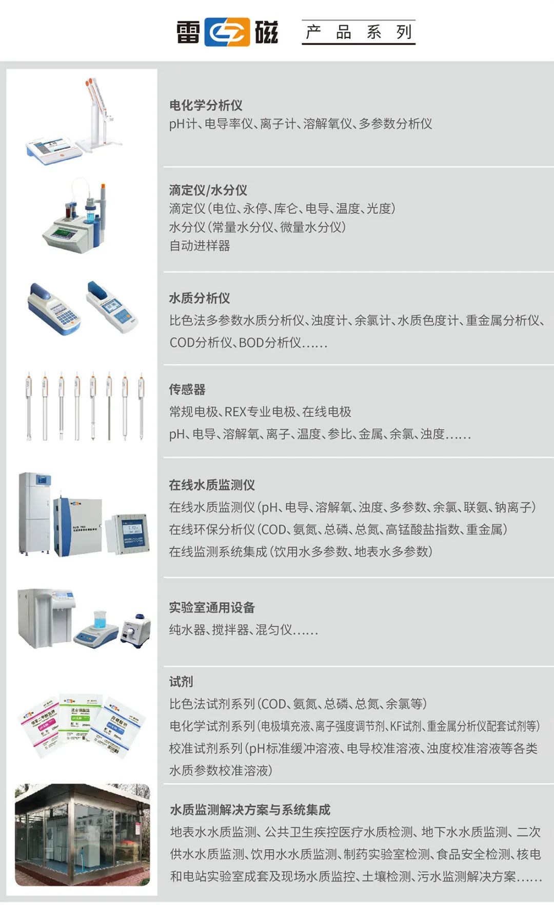 作為中國分析儀器的發(fā)源地之一,“雷磁”長期以來不忘初心,牢記使命,以“為提高人們的生活質(zhì)量,提供高科技分析儀器和優(yōu)質(zhì)服務(wù)!”為使命,始終致力于水質(zhì)分析儀器和方法的研究開發(fā),成為行業(yè)的領(lǐng)軍企業(yè)!