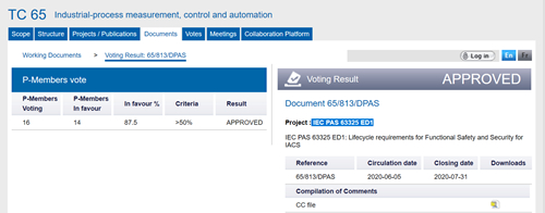 2020年12月8日,我國主導制定的國際標準《工業(yè)自動化控制系統(tǒng)安全一體化生命周期要求》正式發(fā)布,編號為IEC PAS 63325:2020。