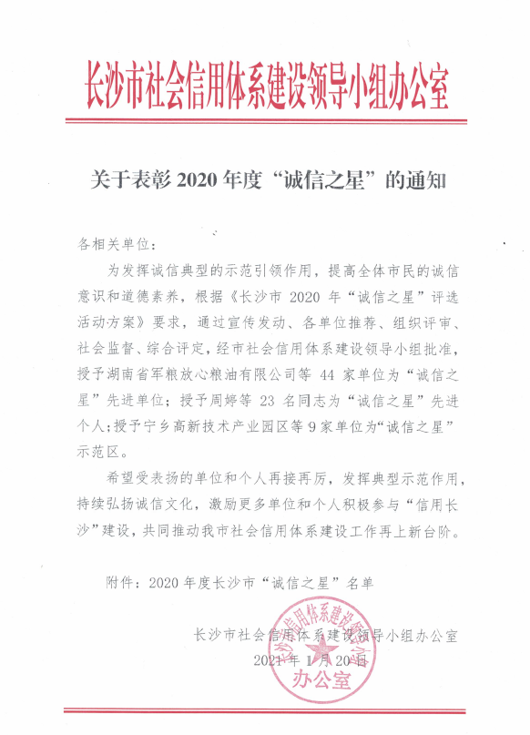 為推進長沙市社會信用體系建設,提高全社會信用水平,樹立“信用長沙”品牌,營造優(yōu)良營商環(huán)境,根據《長沙市2020年“誠信之星”評選活動方案》要求,經過層層推薦、審核、評審,威勝信息技術股份有限公司榮獲長沙市社會信用體系建設領導小組辦公室頒發(fā)的“誠信之星”榮譽稱號。