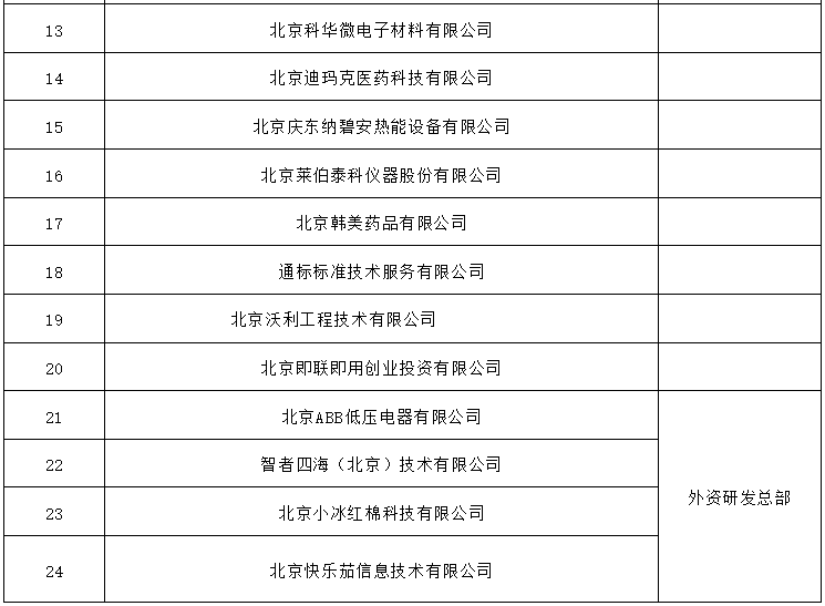 根據(jù)《北京市人民政府辦公廳印發(fā)〈北京市關(guān)于支持外資研發(fā)中心設(shè)立和發(fā)展的規(guī)定〉的通知》(京政辦發(fā)〔2022〕11號)有關(guān)規(guī)定,現(xiàn)將第三批北京市外資研發(fā)中心認定名單(詳見附件)予以發(fā)布。
