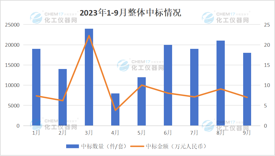 觀察“2023年1月-9月電鏡中標情況”可以看出,9月的電鏡中標數(shù)量與上月相比基本持平,中標數(shù)量和中標金額略有降低。9月電鏡中標數(shù)量為18套,與8月的21套相比,下降了5%;中標金額為7004.64萬元,與8月的9072.17萬元相比,下降了22.79%。