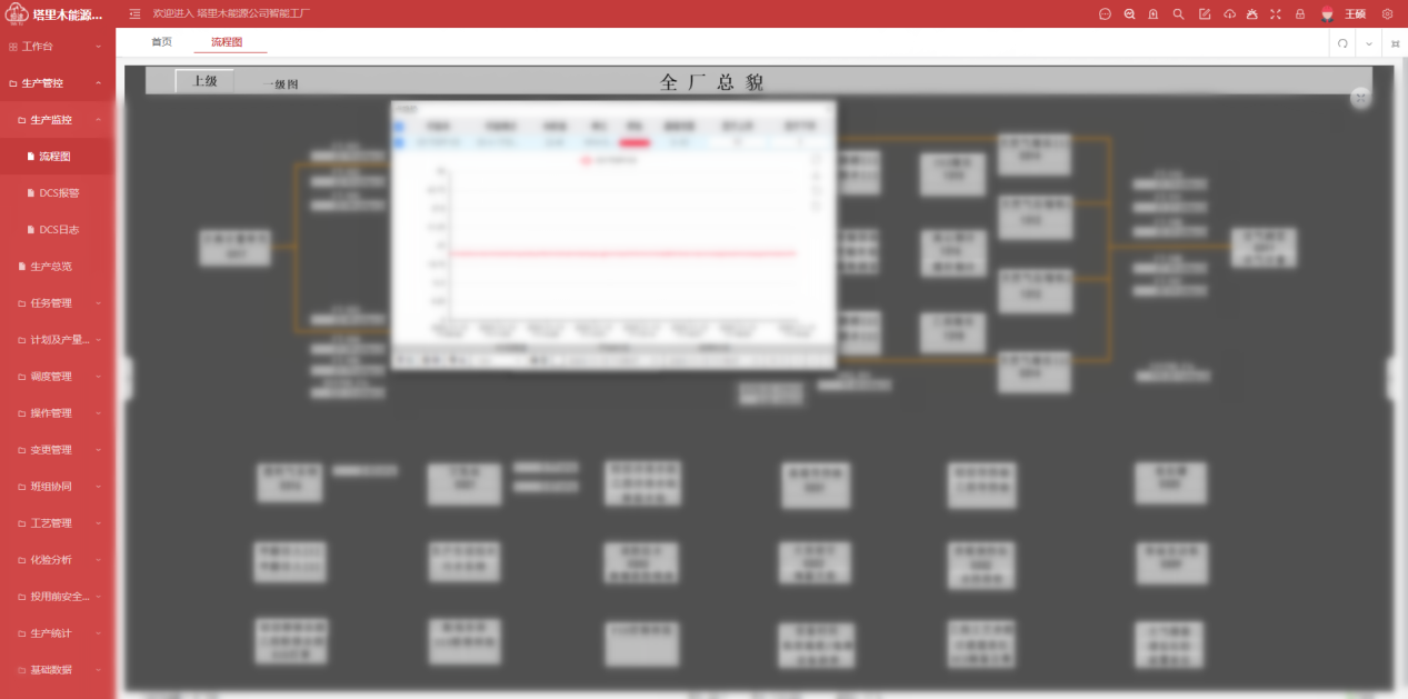 具有查看權限的人員可以選擇查看對應裝置流程畫面,畫面數據和設備狀態動態刷新,使得生產管理人員及時了解當前的裝置運行狀態,便于及時發現生產過程存在的異常,并進行及時處理。