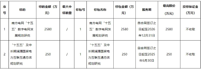 南方電網(wǎng)公司“十五五”電網(wǎng)規(guī)劃專題公開招標(biāo)項(xiàng)目