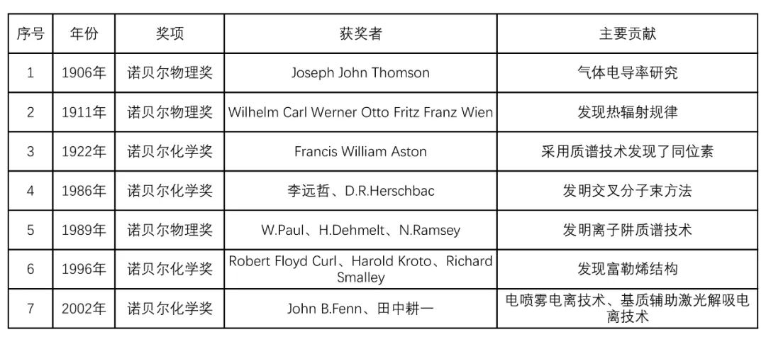表1 與質(zhì)譜原理及技術(shù)發(fā)展相關(guān)的諾貝爾獎項