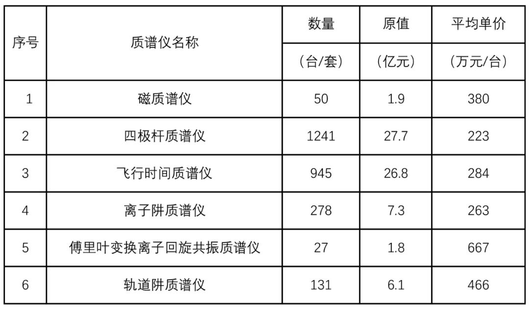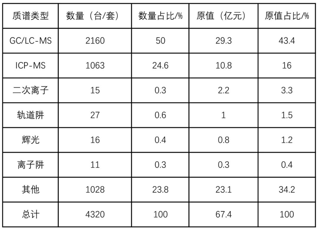 表6 2021年海關(guān)進(jìn)口不同類型質(zhì)譜儀器數(shù)量