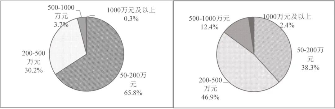 目前我國高校院所擁有的質(zhì)譜儀器單臺原值主要集中在50~200萬元之間,數(shù)量為7179臺(套),原值總額為80.7億元;單臺原值超過200萬元的質(zhì)譜儀器數(shù)量占比34.2%,原值占比則為61.7%。每年新購置儀器中,高端質(zhì)譜儀器原值總額所占比重逐年升高。以500~1000萬元原值儀器數(shù)量為例,2011年占比僅為6.7%,而2021年則高達(dá)22.4%。這充分反映了高校院所對高精尖儀器的旺盛需求與國家財政資金的巨大投入(圖2)。