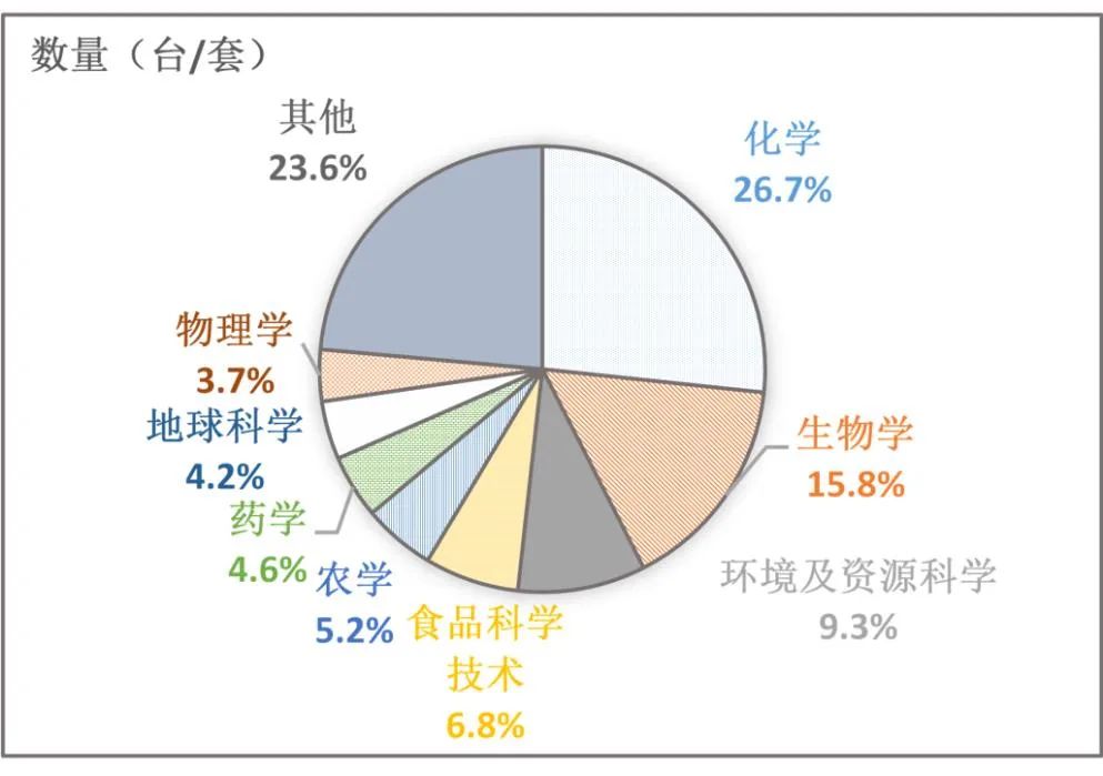 圖3 不同學(xué)科領(lǐng)域質(zhì)譜儀器數(shù)量分布圖