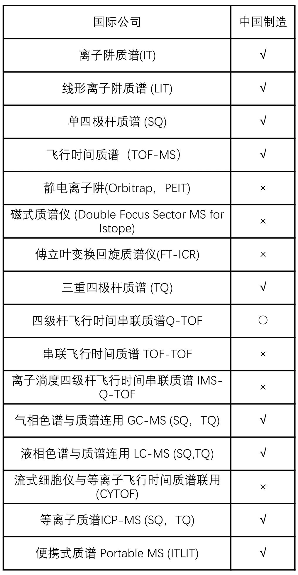 表7 國內(nèi)外質(zhì)譜儀器產(chǎn)品類型對比