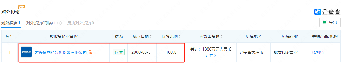值得注意的是,2023年3月蘇州依利特科技有限公司注冊成立,企查查顯示這家公司100%控股了大連依利特分析儀器有限公司。這也就意味著,依利特的運營主體變成了剛剛在蘇州注冊成立的這家公司。