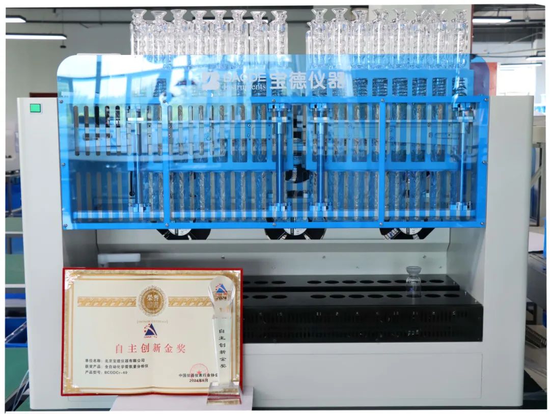 在本年度的評選中,北京寶德儀器有限公司(以下簡稱“寶德儀器”)自主研制的BCODCr-40 全自動化學需氧量(重鉻酸鹽法)分析儀榮獲“自主創(chuàng)新金獎”。