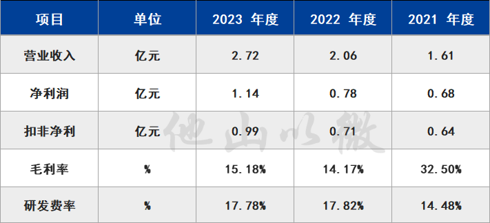 業(yè)績(jī)方面:2023年?duì)I收2.72億元,凈利0.99億元