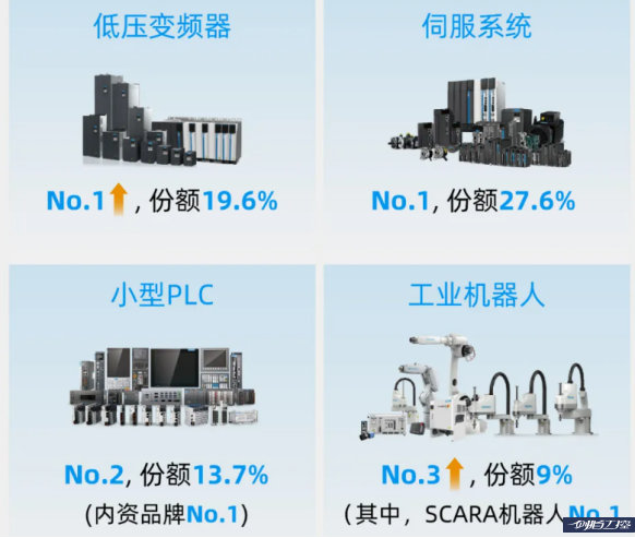 在工控領域,匯川技術以其龍頭產品和品牌實力,贏得了國內市場的廣泛認可。在激烈的市場競爭中,匯川技術獨樹一幟,展現出強大的競爭力,成功抵御了行業內卷的壓力。匯川國產中唯一擁有市場定價權的品牌,相對匯川,西門子、安川、ABB價格高的可不止一點點。當然,這兩年外資品牌市場份額也在下降,但仍然不可小覷。