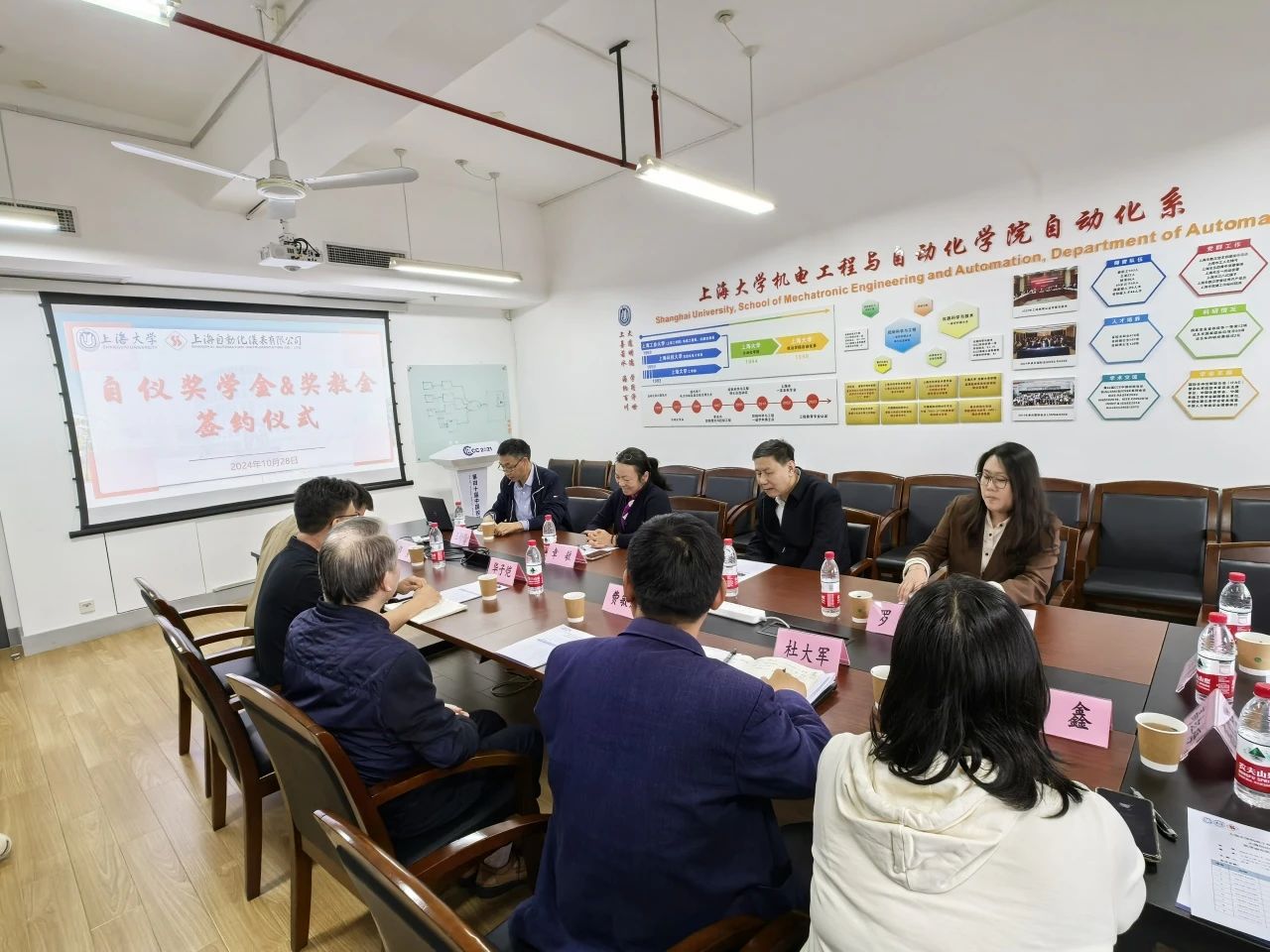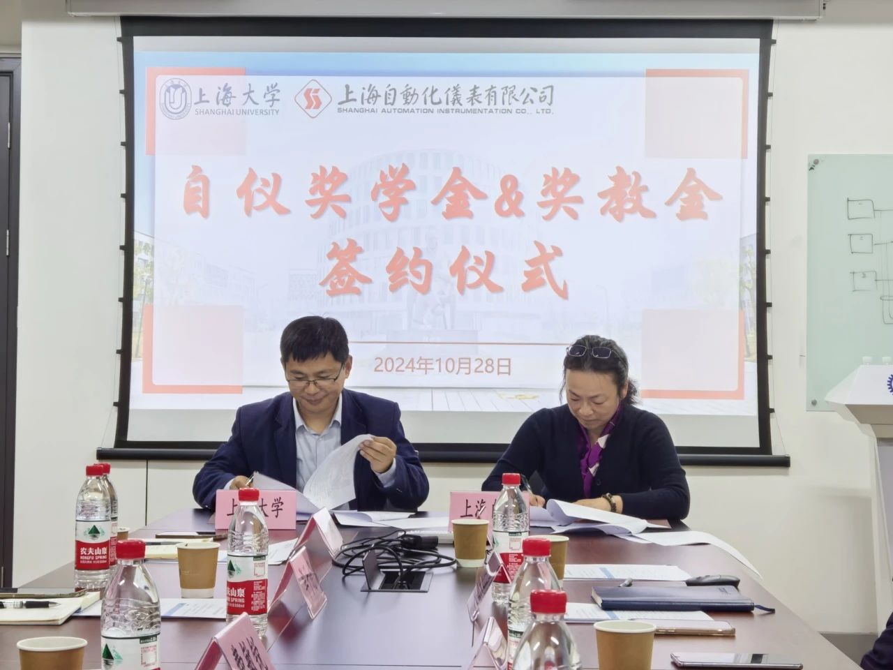 10月28日,上海自儀與上海大學機電工程與自動化學院(簡稱:機自學院)“自儀獎學金&獎教金”簽約儀式舉行。雙方共同簽署了《上海大學教育發(fā)展基金會捐贈協(xié)議書》以及《合作培養(yǎng)學生和資助教學協(xié)議書》,就繼續(xù)開展本科生、研究生合作培養(yǎng)及資助教育教學達成一致意見。上海大學自強書院院長費敏銳,機自學院副院長華子愷,自動化系黨總支書記邵勇,公司副總經(jīng)理陳凱,黨委副書記、紀委書記、工會主席章敏,以及學生代表參加簽約儀式。