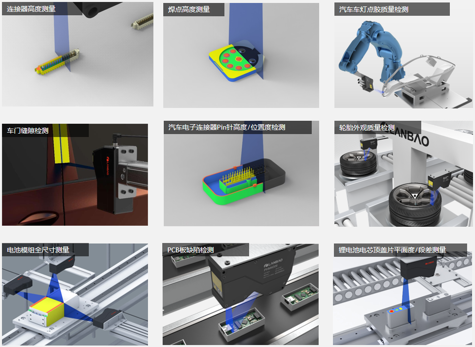 蘭寶激光線掃描3D視覺(jué)傳感器是集圖像采集、圖像處理、智能標(biāo)定、應(yīng)用算法于一體的超高集成度智能傳感器。突破了全自動(dòng)標(biāo)定技術(shù),優(yōu)化了材料工藝設(shè)計(jì)等,能夠?qū)崿F(xiàn)高精度測(cè)量;利用自主研發(fā)的偏振調(diào)制技術(shù),能夠?qū)μ厥獗粶y(cè)面進(jìn)行穩(wěn)定檢測(cè);采用自主研發(fā)的“ASALI”技術(shù),保證信號(hào)光強(qiáng)度不變,能夠?qū)崿F(xiàn)抗強(qiáng)環(huán)境光干擾,具有高環(huán)境適用性。產(chǎn)品重復(fù)精度±0.1um,X軸分辨率4.8-5.2um,達(dá)到國(guó)內(nèi)領(lǐng)先水平。Z軸線性度達(dá)0.008%,處于國(guó)際領(lǐng)先水平。產(chǎn)品內(nèi)置強(qiáng)大的算法平臺(tái),包含角度檢測(cè)、平整度檢測(cè)、尺寸測(cè)量等諸多算法工具,同時(shí)提供配套的視覺(jué)軟件,可實(shí)現(xiàn)參數(shù)配置、算法工具配置、AI檢測(cè)等功能。目前已滲透消費(fèi)、軍事、工業(yè)領(lǐng)域,在汽車(chē)行業(yè)、鐵路建設(shè)養(yǎng)護(hù)、飛機(jī)船舶制造、3C電子行業(yè)、半導(dǎo)體行業(yè)、LCD行業(yè)、鋰電行業(yè)、金屬制造、電子/電氣部件、塑料/橡膠/薄膜行業(yè)、OA/多媒體、工廠自動(dòng)化等領(lǐng)域有著廣泛應(yīng)用,如汽車(chē)擋風(fēng)玻璃尺寸檢測(cè)、手機(jī)蓋板膠路檢測(cè)、芯片針腳共面度檢測(cè)、電池焊縫檢測(cè)、電路板錫膏厚度檢測(cè)、薄膜厚度檢測(cè)等等。值得一提的是,該傳感器內(nèi)部的關(guān)鍵器件已基本實(shí)現(xiàn)了國(guó)產(chǎn)替代,確保了產(chǎn)品的完全自主可控。