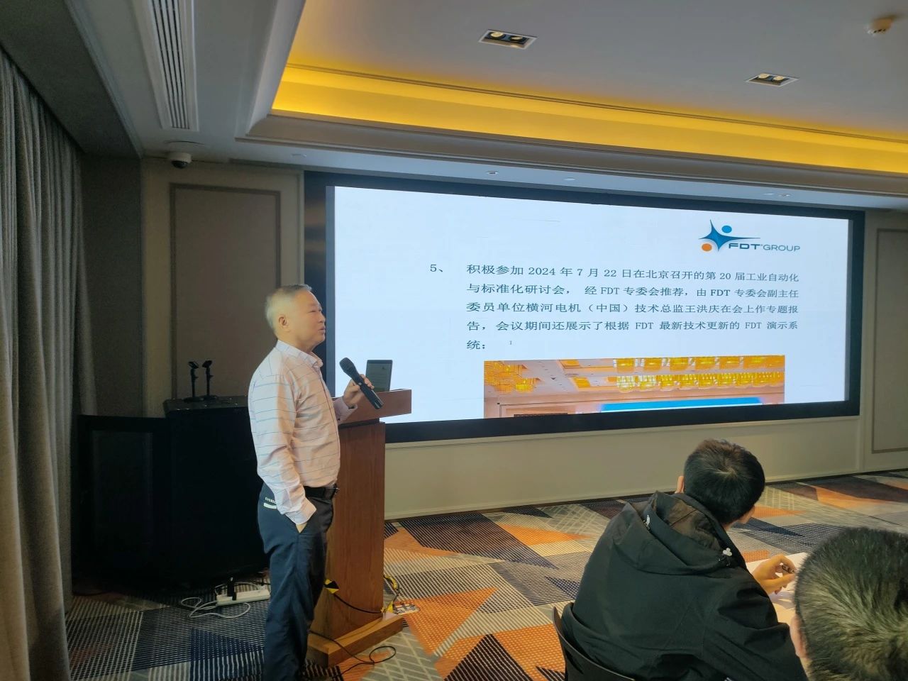 會議于上午9點準時開始,中國FDT專委會常務副主任委員,來自恩德斯豪斯的王奕瑋先生向參加本次會議的全體代表致歡迎詞,向大家介紹了FDT專委會在今年下半年與國際FCG組織的溝通、合作進展,以及對專委會2025年各項重點工作的初步設想。隨后進行了本次會議的一項重要提案表決 -- 專委會委員單位及人員調(diào)整方案:增補章安冬為委員單位美名軟件代表;增補FCG為常委單位,王駿為代表。以上提案經(jīng)現(xiàn)場代表一致通過并立即生效。