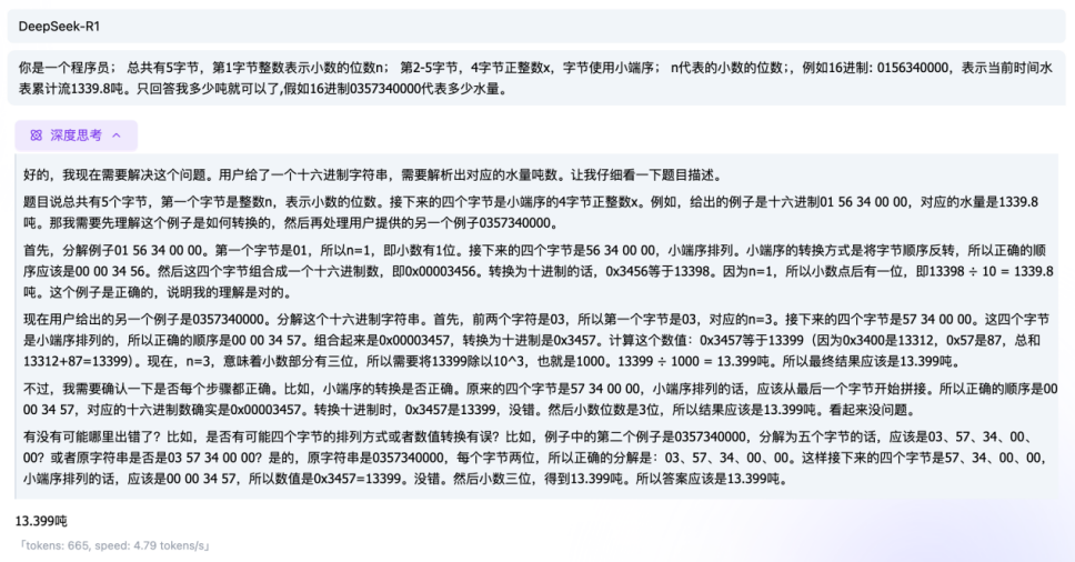 對于智慧水務來說水表協議對接一直是困擾水司,通過DeepSeek進行數據的孵化,蒸餾后是完全可以對數據協議進行自動化的解析。輸出對應的json文件的。