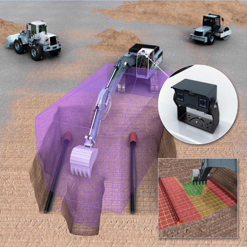 應(yīng)用于推土機(jī)、壓路機(jī)、挖掘機(jī)等特種型車輛避障。由于特種車輛的司機(jī)專注于作業(yè),無(wú)法在駕駛時(shí)兼顧后方或側(cè)方路人。又因車輛重量較大導(dǎo)致制動(dòng)距離長(zhǎng),造成安全隱患。Visionary-B Two 雙目相機(jī)配合算法,可以識(shí)別最遠(yuǎn)10米的行人或障礙物,協(xié)助車輛進(jìn)行人員識(shí)別和避障。