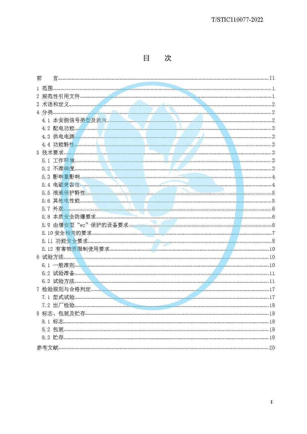 T/STIC 110077—2022《隔離式安全柵》標(biāo)準(zhǔn)規(guī)定了隔離式安全柵的分類、技術(shù)要求、試驗(yàn)方法、 檢驗(yàn)規(guī)則與合格判定,以及標(biāo)志、包裝及貯存,適用于包括模擬信號(hào)、溫度信號(hào)和數(shù)字信號(hào)任何具有特定的輸入、輸出變量,且輸入輸出變量之間具有特定關(guān)系(傳遞函數(shù))的信號(hào)隔離和限能功能的隔離式安全柵。