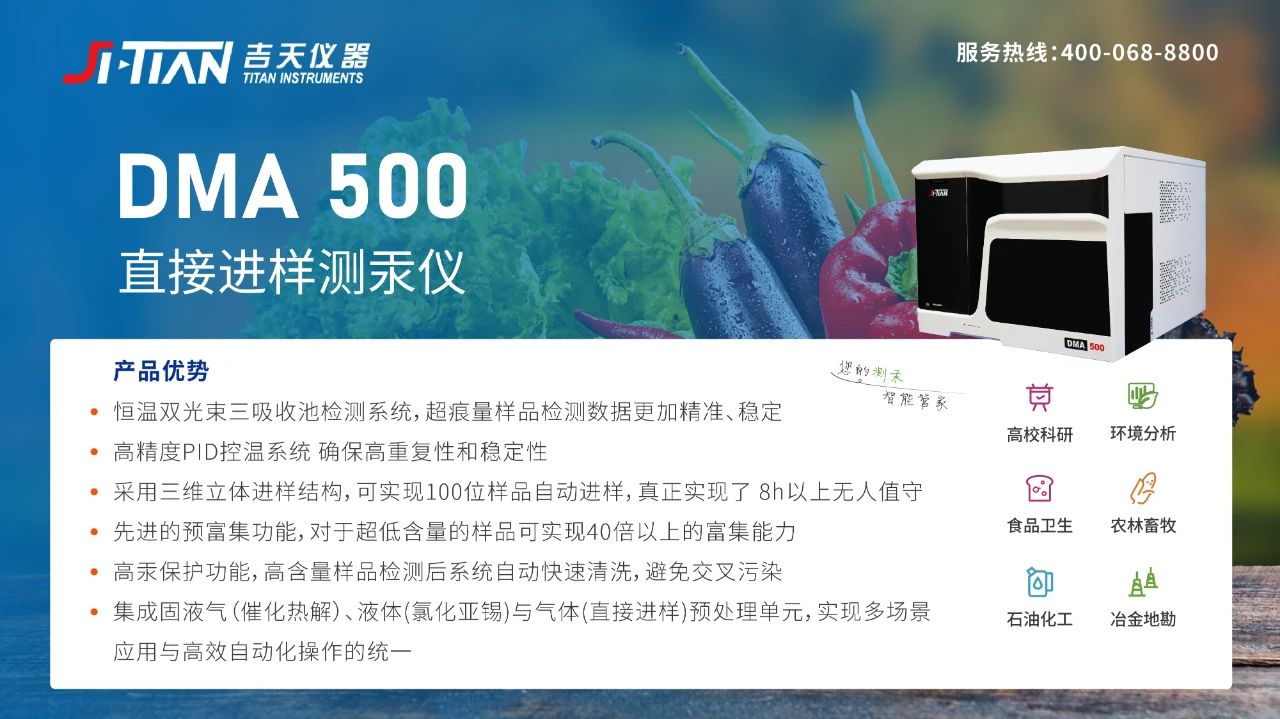 DMA-500直接進(jìn)樣測汞儀是吉天儀器自主研發(fā)的第二代直接進(jìn)樣元素分析產(chǎn)品,適用于各類型固體、液體、氣體樣品中的汞含量分析檢測。吉天儀器突破關(guān)鍵技術(shù)壁壘,逐步打破核心部件對進(jìn)口的依賴,產(chǎn)品國產(chǎn)化率超85%。