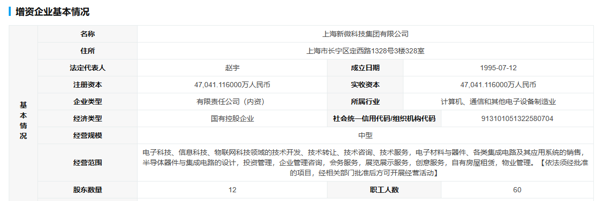 資料顯示,新微集團成立于1995712日,是中國科學院上海微系統與信息技術研究所、上海聯和投資有限公司共同發起成立的高科技投資公司。公司以實業為基礎,發揮中科院的科技優勢,推動科技與市場、資本的有效結合,促進科技成果的產業化進程,成為致力于超越摩爾(MtM)領域的大型科技產業投資及管理公司。公司致力于中科院科技成果轉移轉化、投融資、科技孵化器建設等核心任務,專注于微電子材料、傳感器、物聯網、高可靠性集成電路等領域。