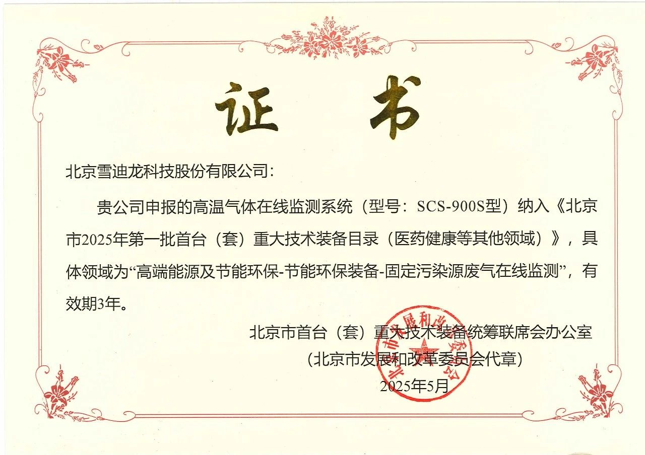 近日,北京市發(fā)展和改革委員會正式公布“北京市2025年第一批首臺(套)重大技術(shù)裝備目錄”,雪迪龍自主研發(fā)的高溫氣體在線監(jiān)測系統(tǒng)(SCS-900S)成功入選,展現(xiàn)了雪迪龍在環(huán)保裝備領域的技術(shù)實力和創(chuàng)新能力。