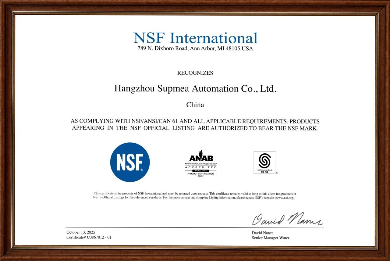 近日,美儀電磁流量計(jì)產(chǎn)品系列順利通過美國 NSF認(rèn)證,被正式列入 NSF 官方認(rèn)證名單。