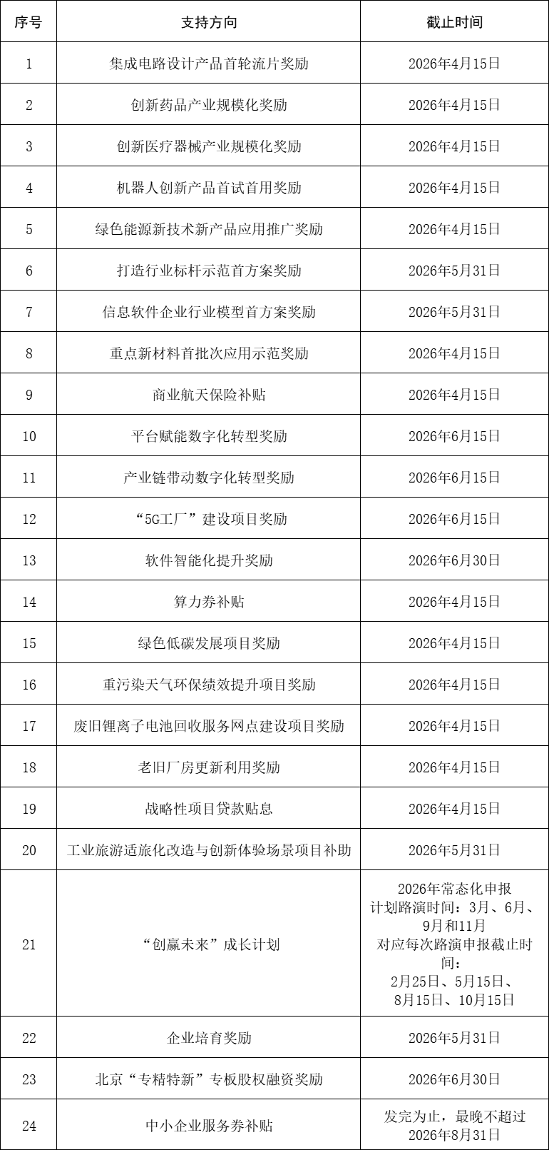 2.符合方向1-21、方向23條件的申報(bào)單位可在2026年3月4日至申報(bào)截止時(shí)間內(nèi)登錄北京市人民政府門(mén)戶網(wǎng)站“政策兌現(xiàn)”頻道(https://zhengce.beijing.gov.cn),選擇相對(duì)應(yīng)的項(xiàng)目,按照指引填報(bào)相關(guān)企業(yè)信息及對(duì)應(yīng)材料。