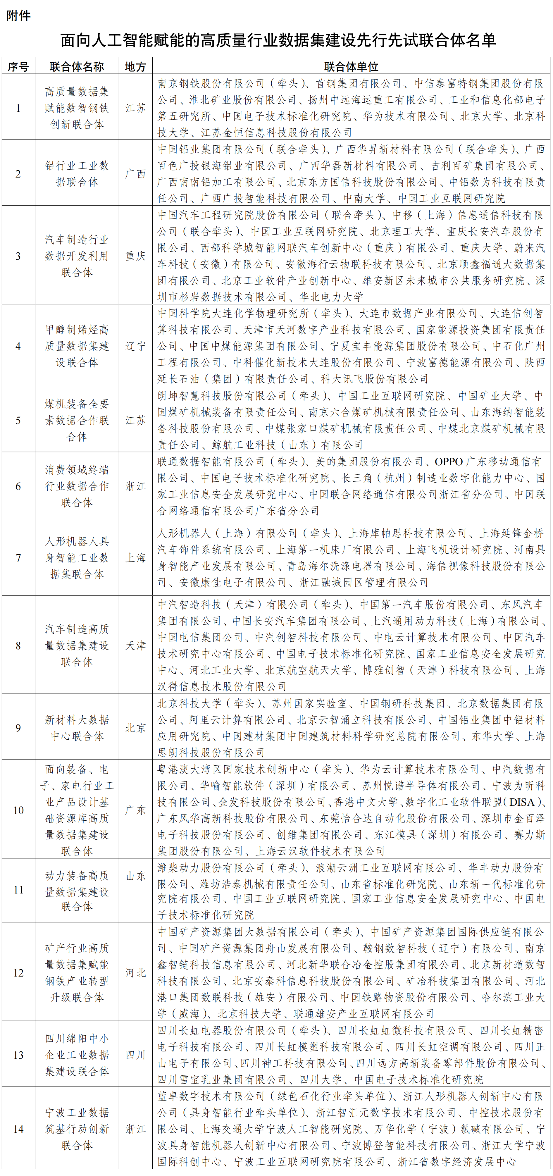 附件:面向人工智能賦能的高質量行業數據集建設先行先試聯合體名單