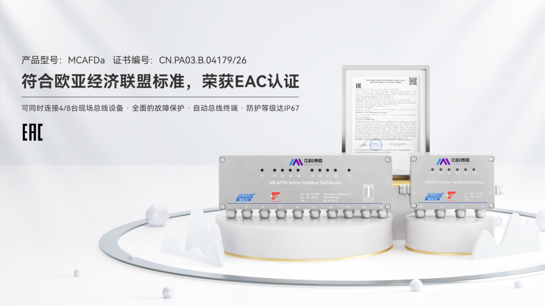 EAC認(rèn)證的獲得,不僅是對MCAFD系列產(chǎn)品性能與品質(zhì)的權(quán)威認(rèn)可,更是中科博微拓展國際市場的重要里程碑。未來,中科博微將持續(xù)深耕工業(yè)自動化領(lǐng)域,以優(yōu)質(zhì)產(chǎn)品與核心技術(shù),穩(wěn)步開拓歐亞市場,為全球客戶提供更可靠、高效的現(xiàn)場總線解決方案,助力工業(yè)領(lǐng)域高質(zhì)量發(fā)展。