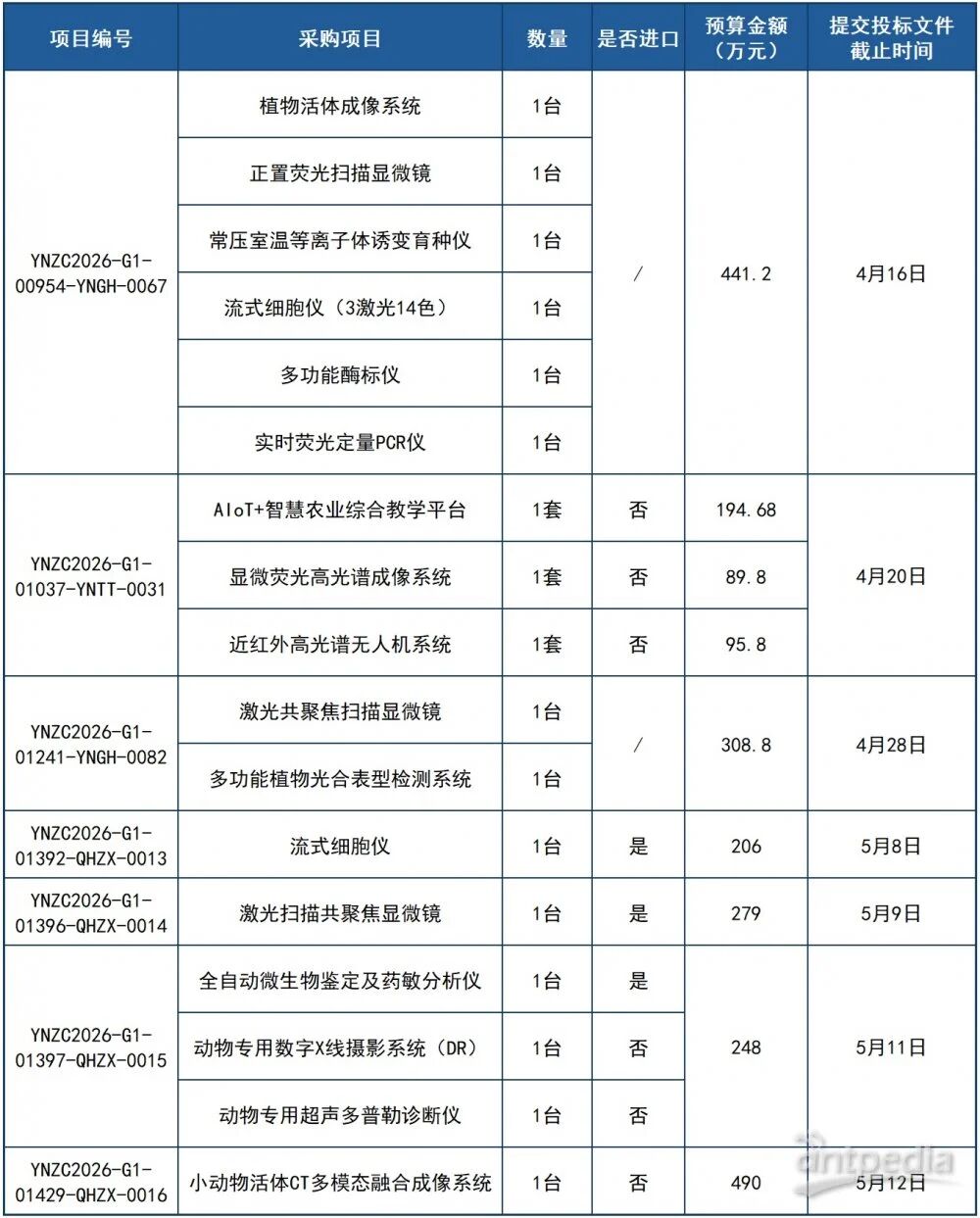 總預算超2353萬!云南農業大學采購一批高端儀器