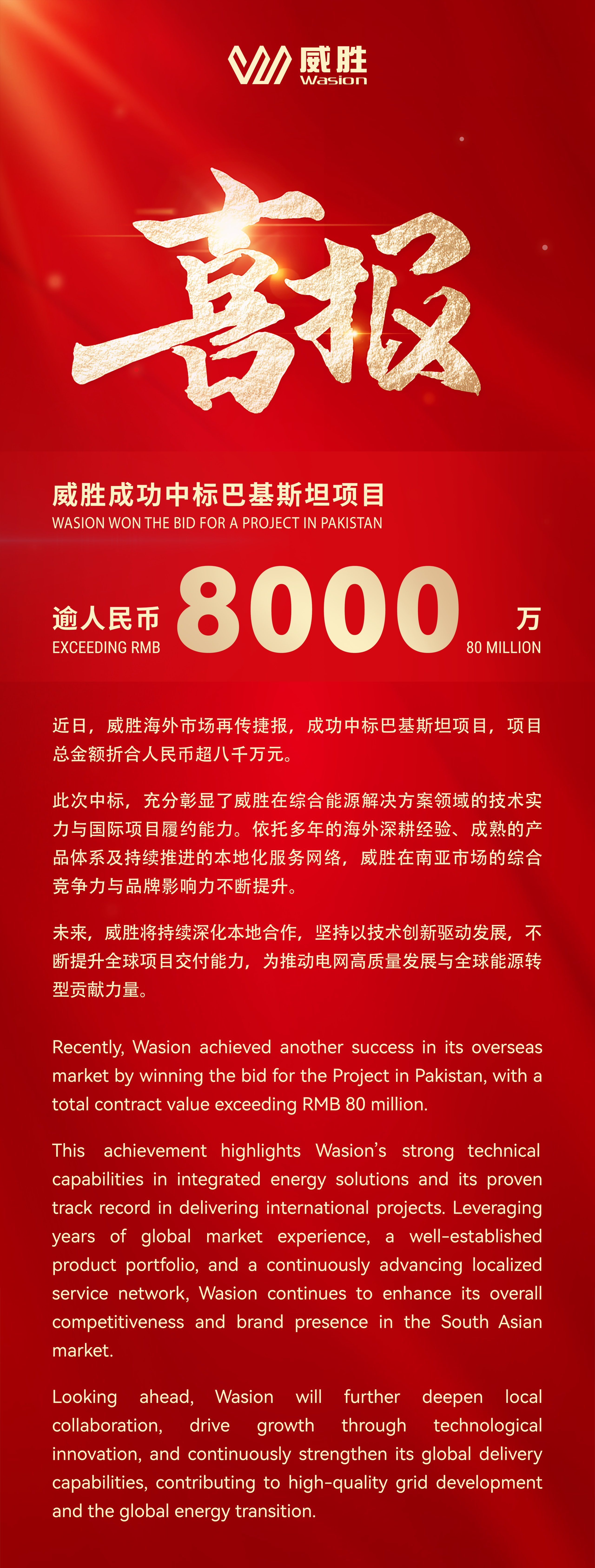 威勝成功中標巴基斯坦項目,中標金額超8000萬元