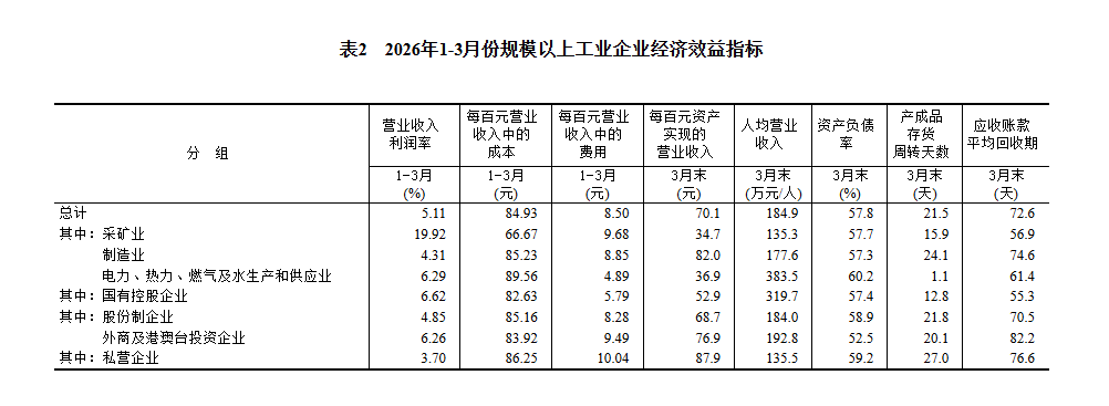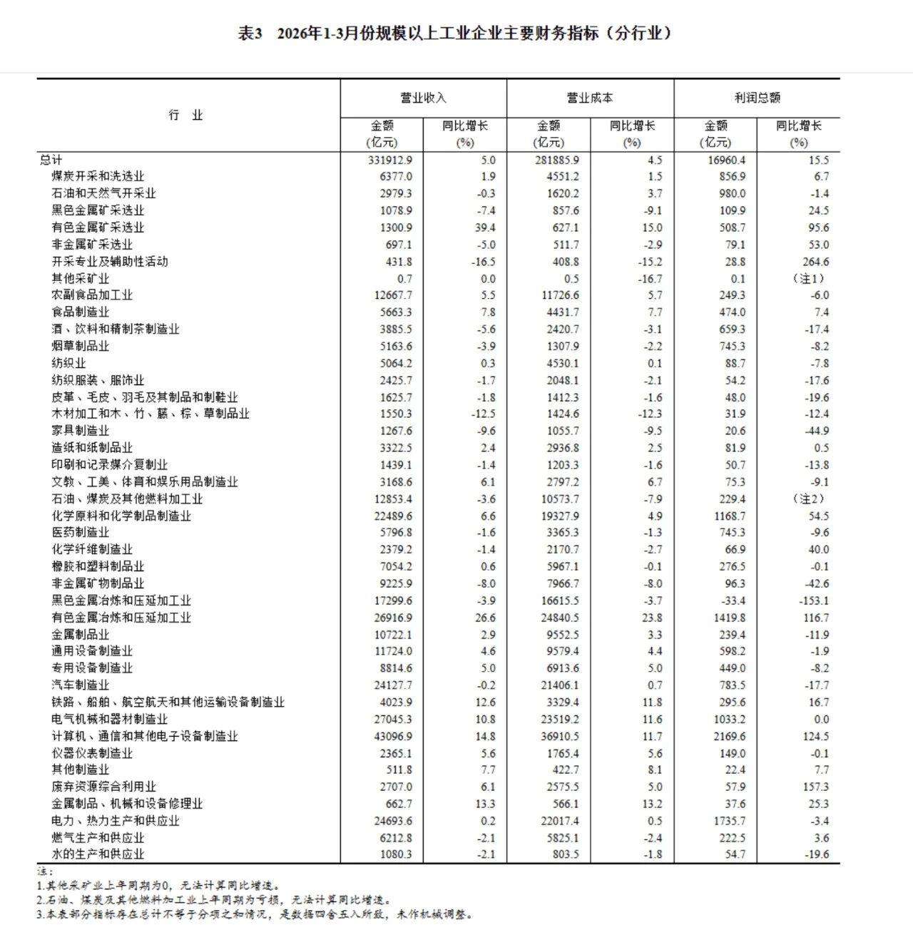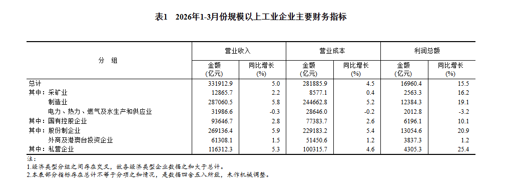【數(shù)據(jù)發(fā)布】2026年1—3月份全國規(guī)模以上工業(yè)企